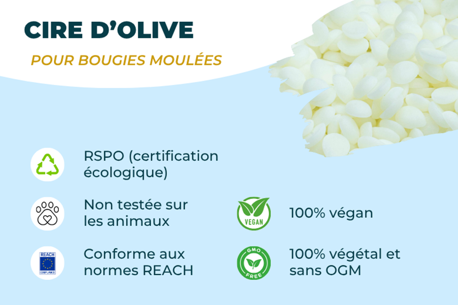 La Cire d'Olive est une cire végétale haut de gamme, parfaite pour les artisans et passionnés de bougies recherchant une alternative naturelle et respectueuse de l'environnement. Issue d'un processus d'extraction durable et provenant du Royaume-Uni, cette cire 100% biodégradable est sans OGM, non testée sur les animaux et entièrement dépourvue de l'odeur caractéristique de l'huile d'olive. Elle garantit une expérience propre et écoresponsable tout en offrant une qualité optimale pour vos créations.