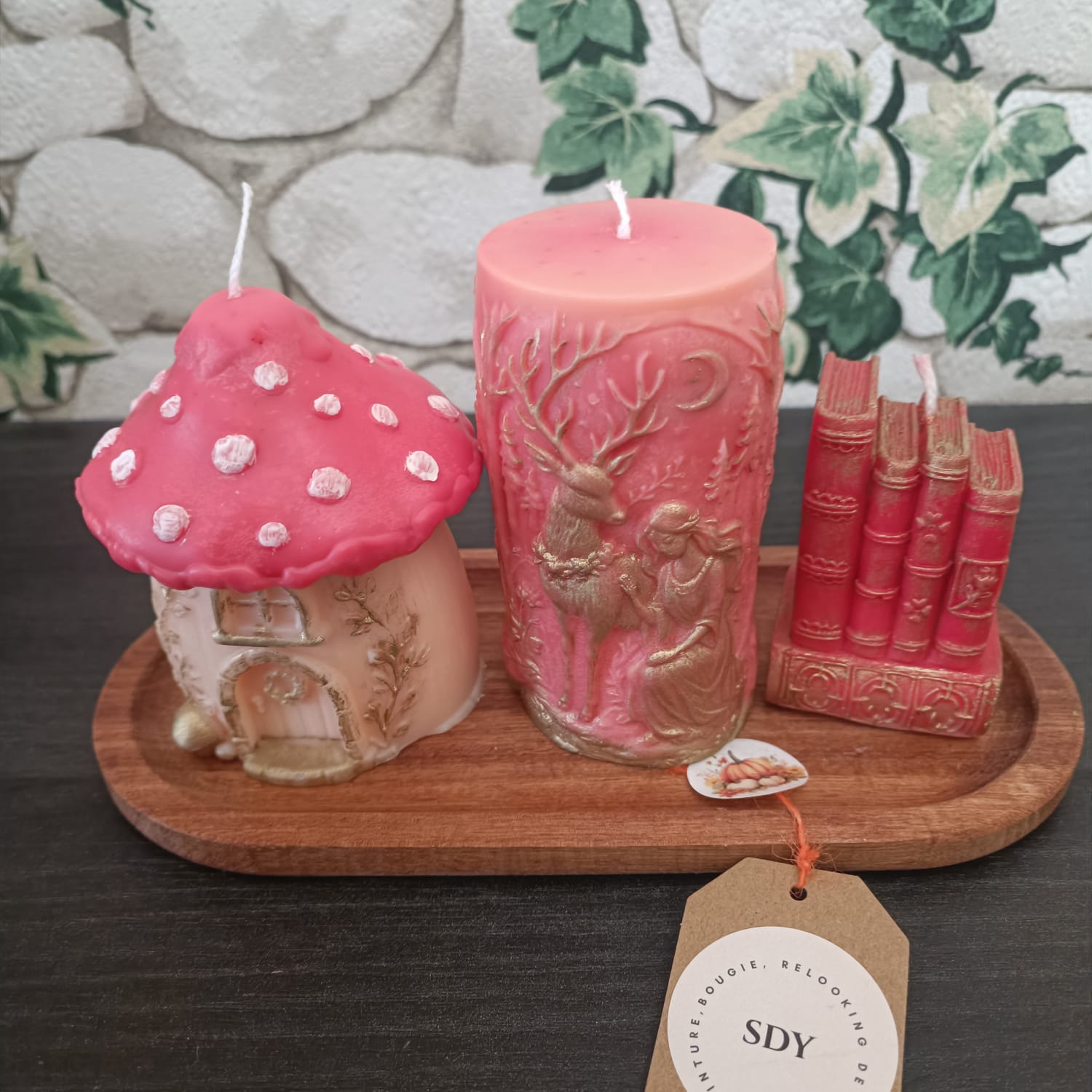 Je propose également des bougies décoratives et odorantes, conçues pour illuminer votre espace tout en créant une atmosphère apaisante. Fabriquées à partir de matériaux naturels, ces bougies diffusent des senteurs envoûtantes qui éveillent les sens et favorisent la relaxation.