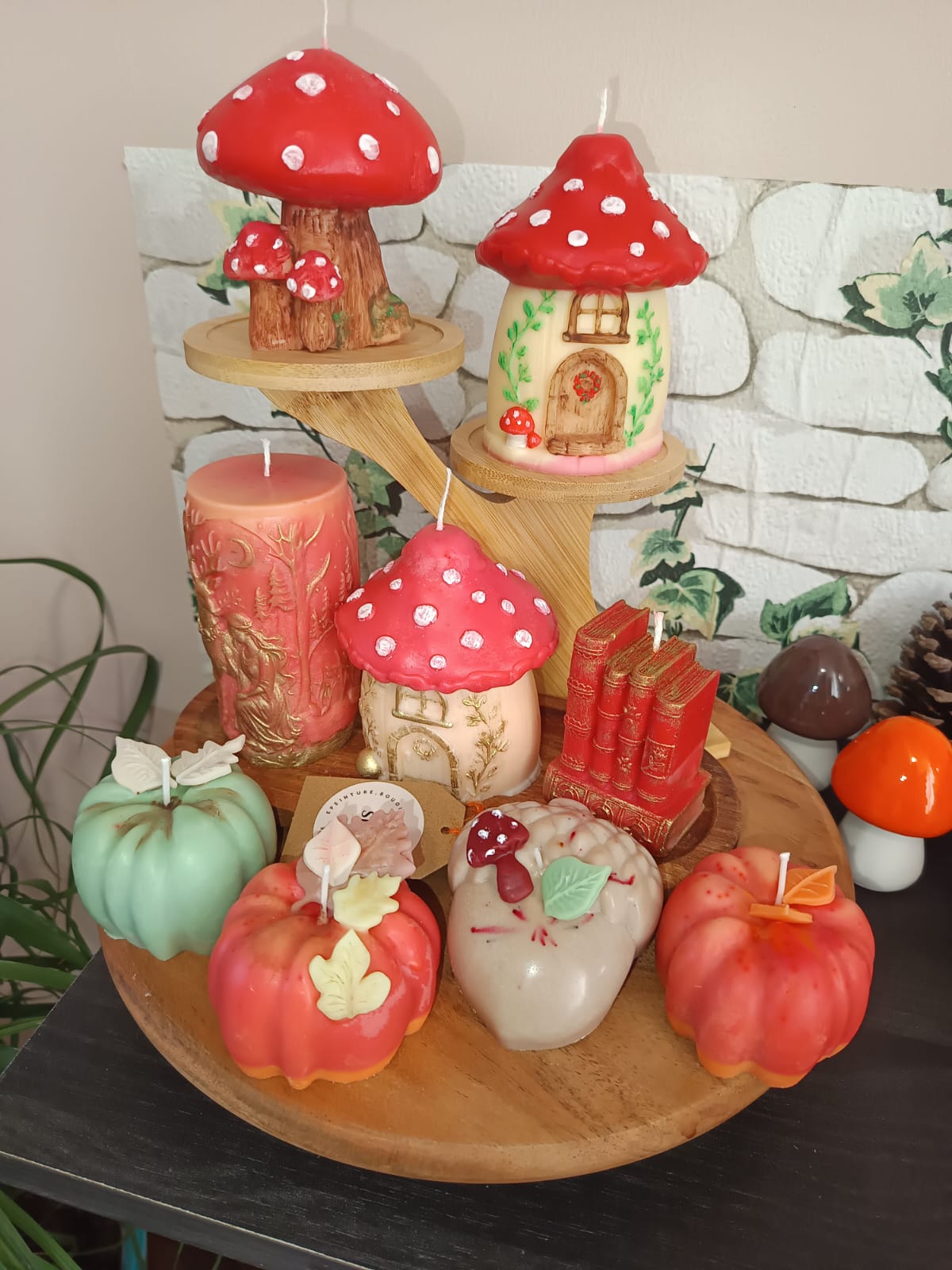 "Découvrez notre collection unique alliant bougies décoratives d'automne, meubles anciens relookés et cadres peints à la main en verre, pour créer une ambiance chaleureuse et élégante dans votre intérieur."