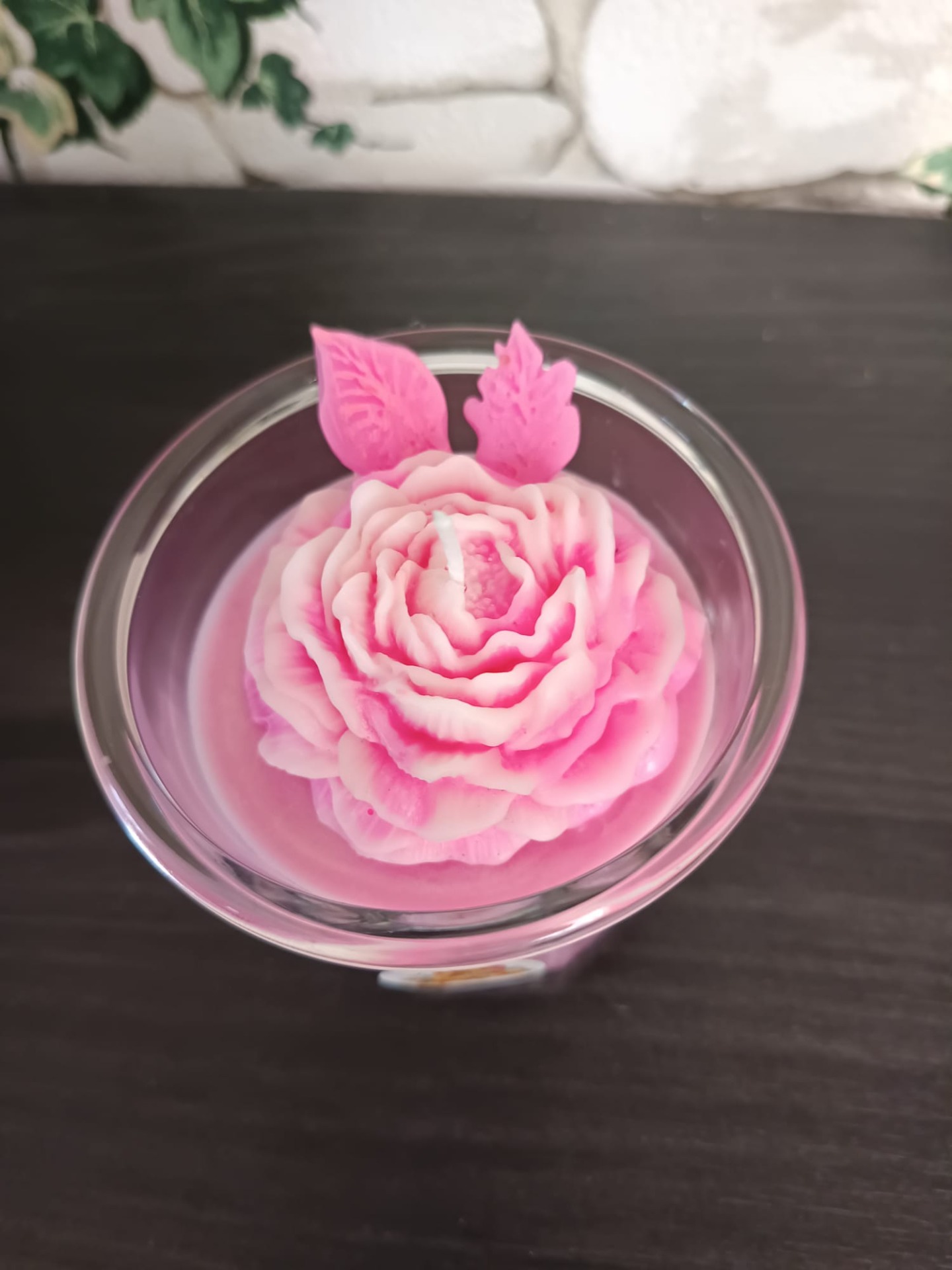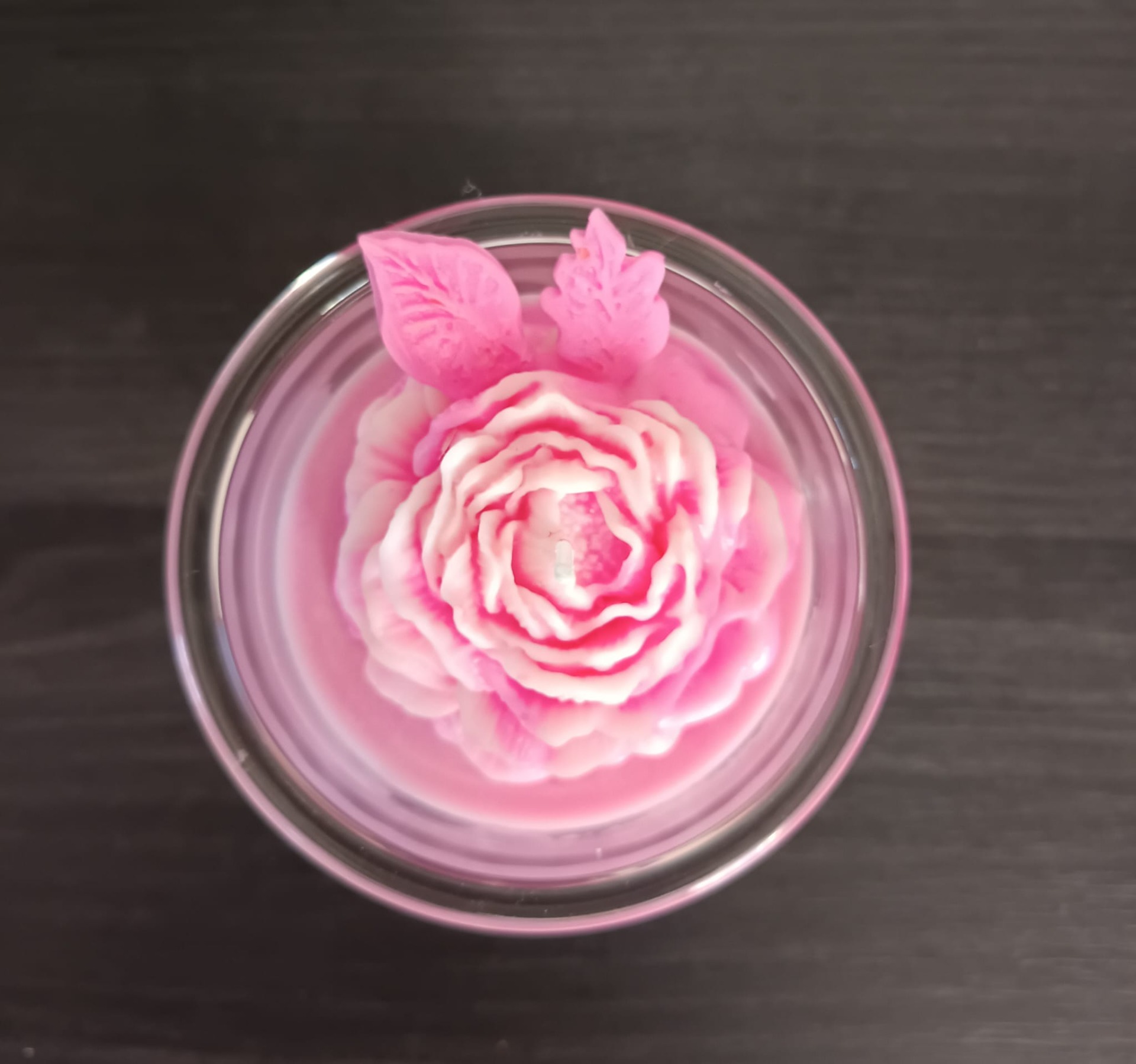Bougie Pivoine dans son pot en verre, couleur rose