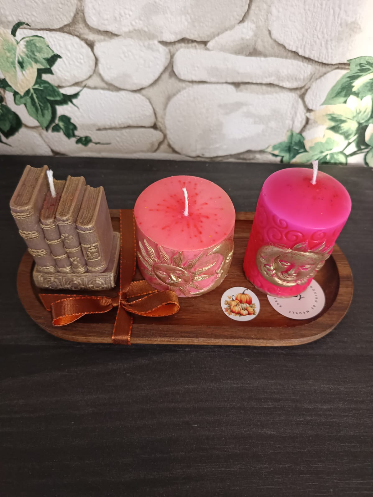 "Découvrez notre collection unique alliant bougies décoratives d'automne, meubles anciens relookés et cadres peints à la main en verre, pour créer une ambiance chaleureuse et élégante dans votre intérieur."