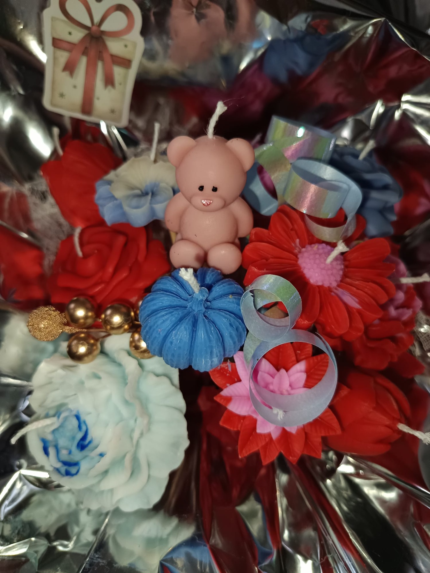 Bouquet de Bougies « Fleurs Rouge, Rose & Bleu, Hérisson Love & Citrouille Bleue »