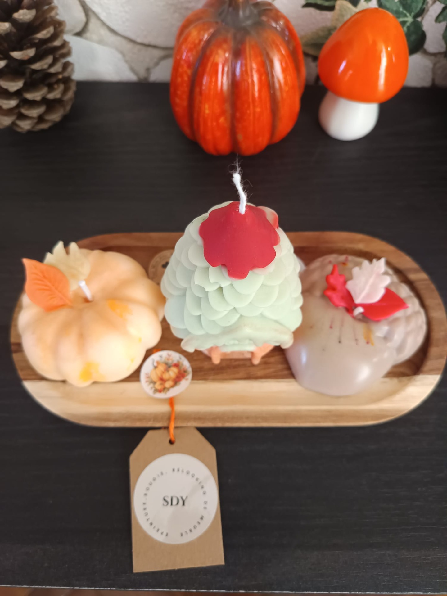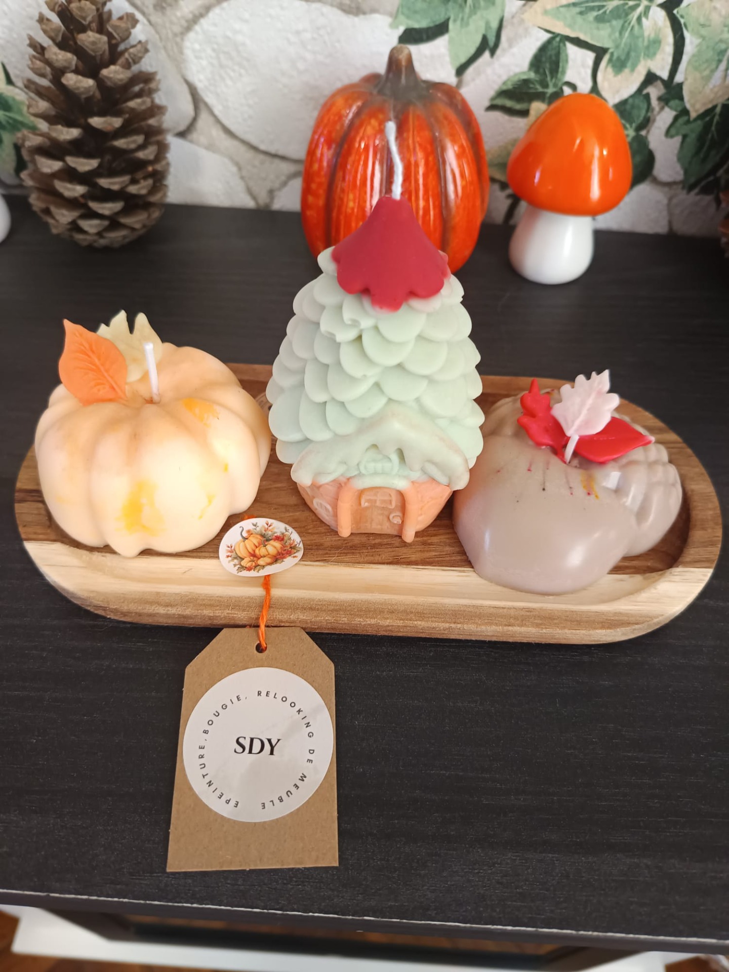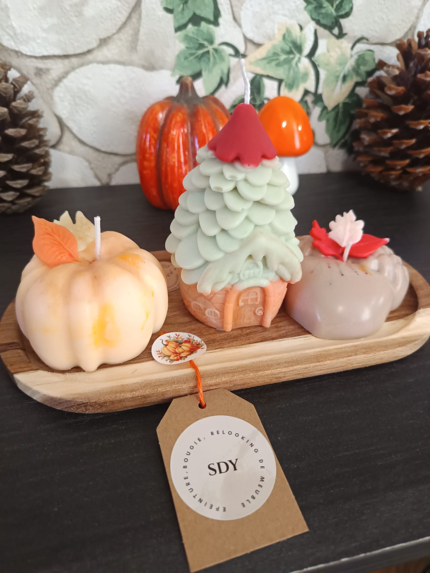 Bougies "Forêt de pin" odeur tarte à la citrouille et cidre de pomme"