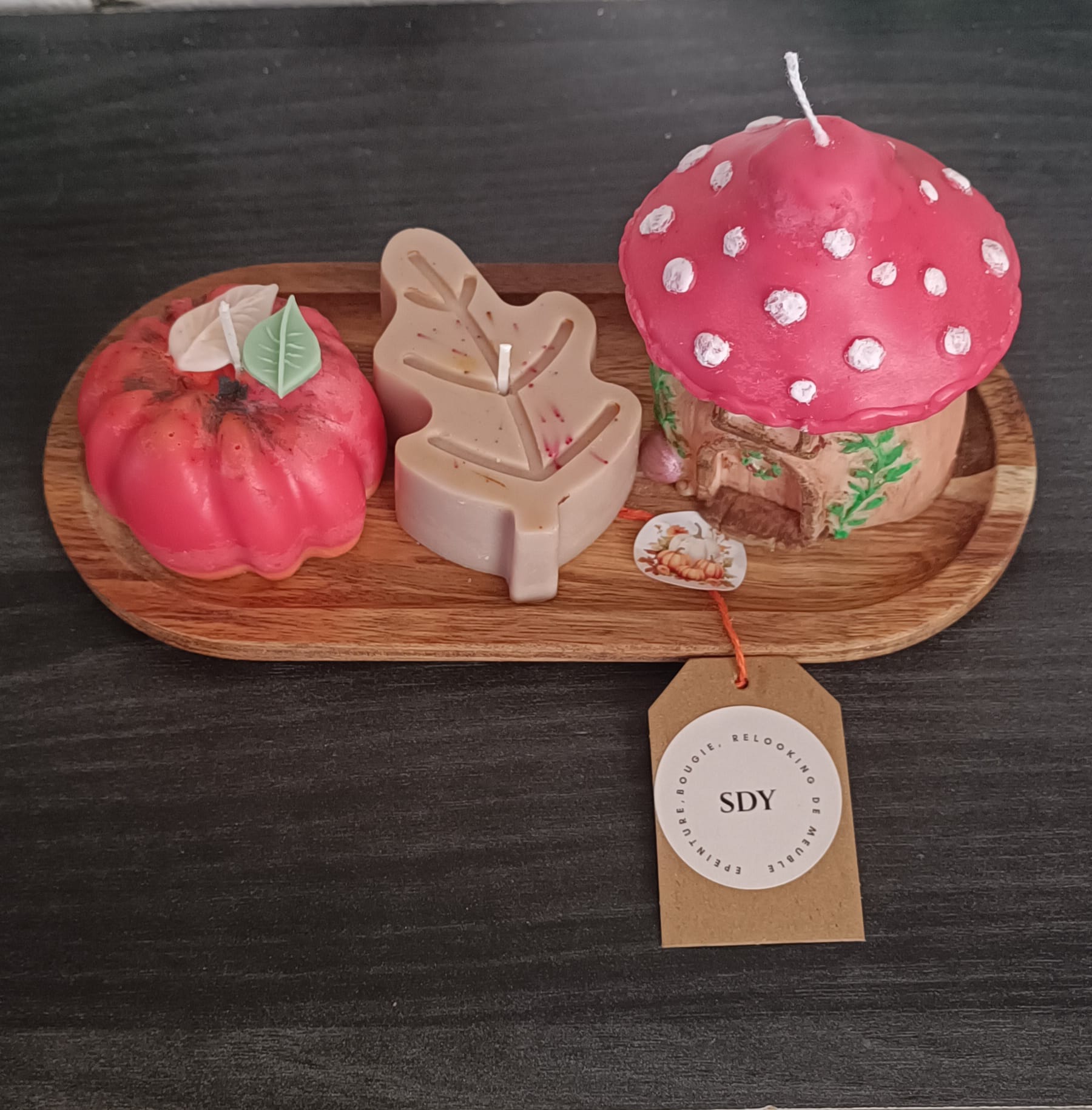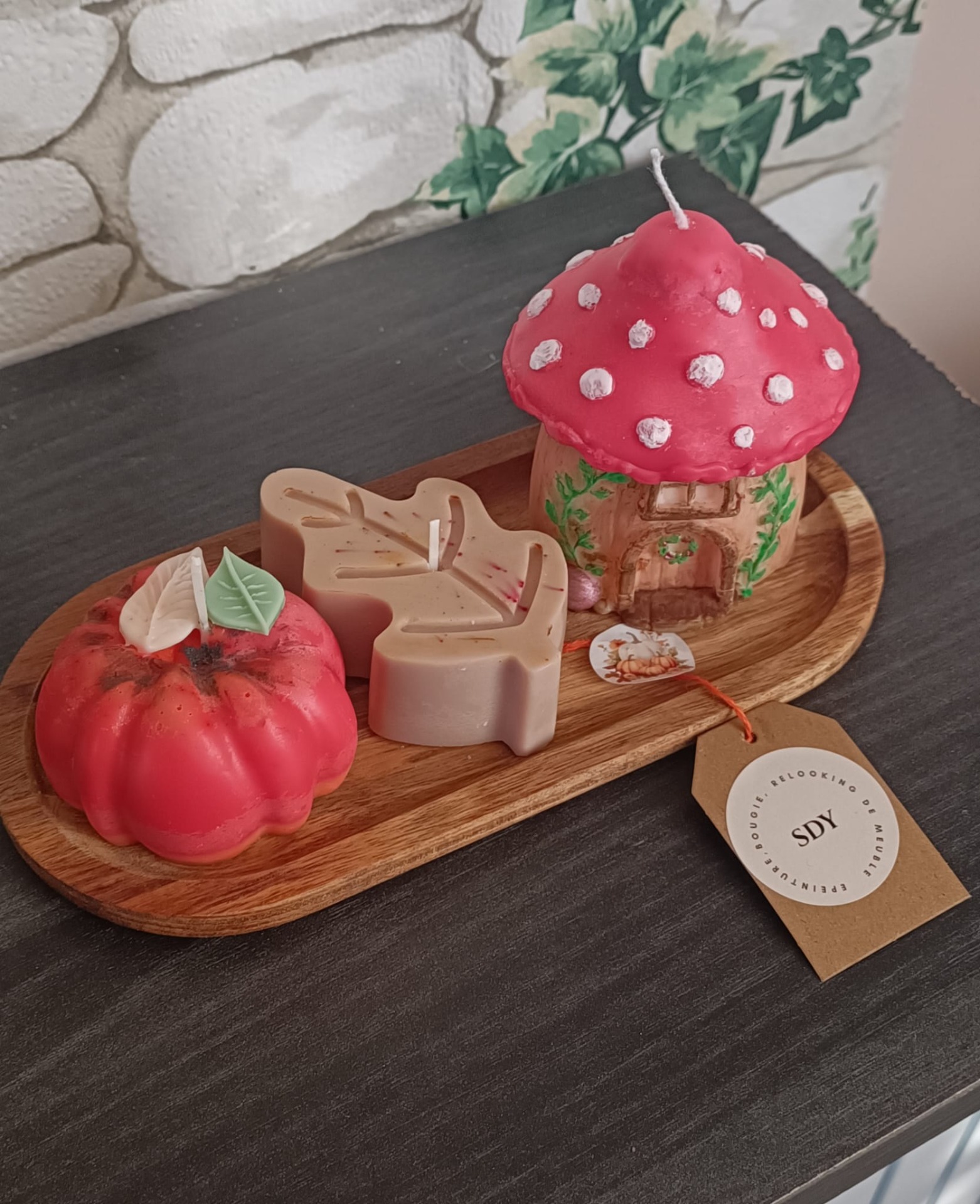 Lot de 3 bougies et son socle en bois décoratif odeur " cookie à la cannelle"